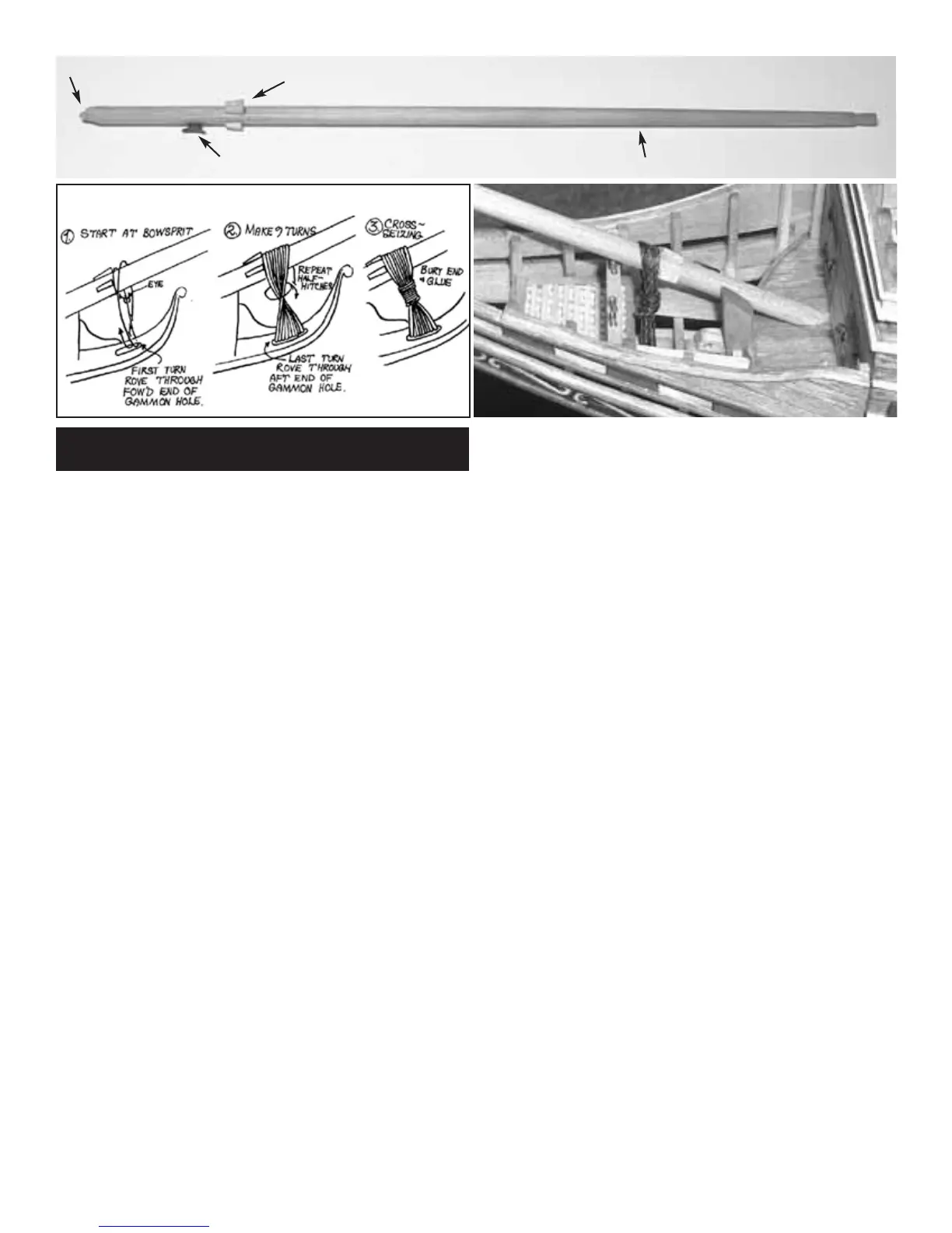 The bowsprit is secured to the stem knee with gammoning and