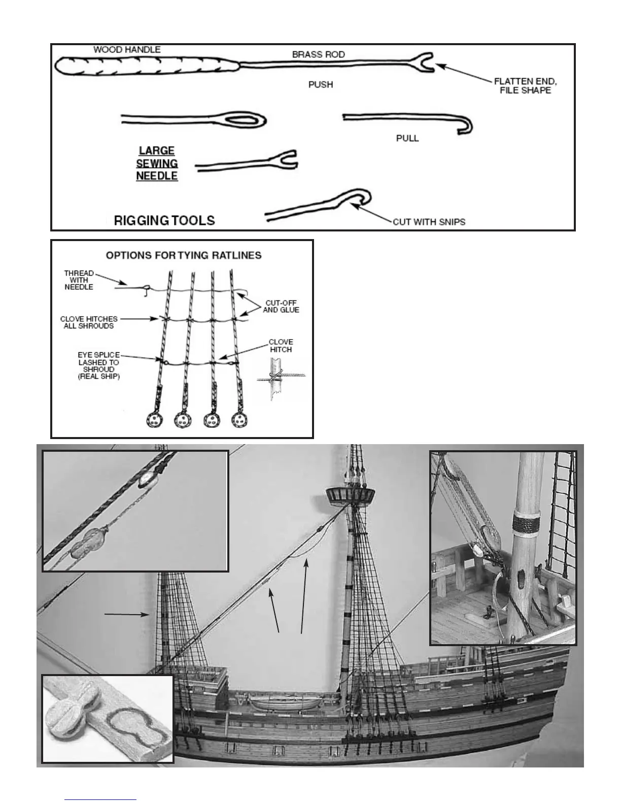 Rig the ratlines on all of the shrouds as shown in the drawing to