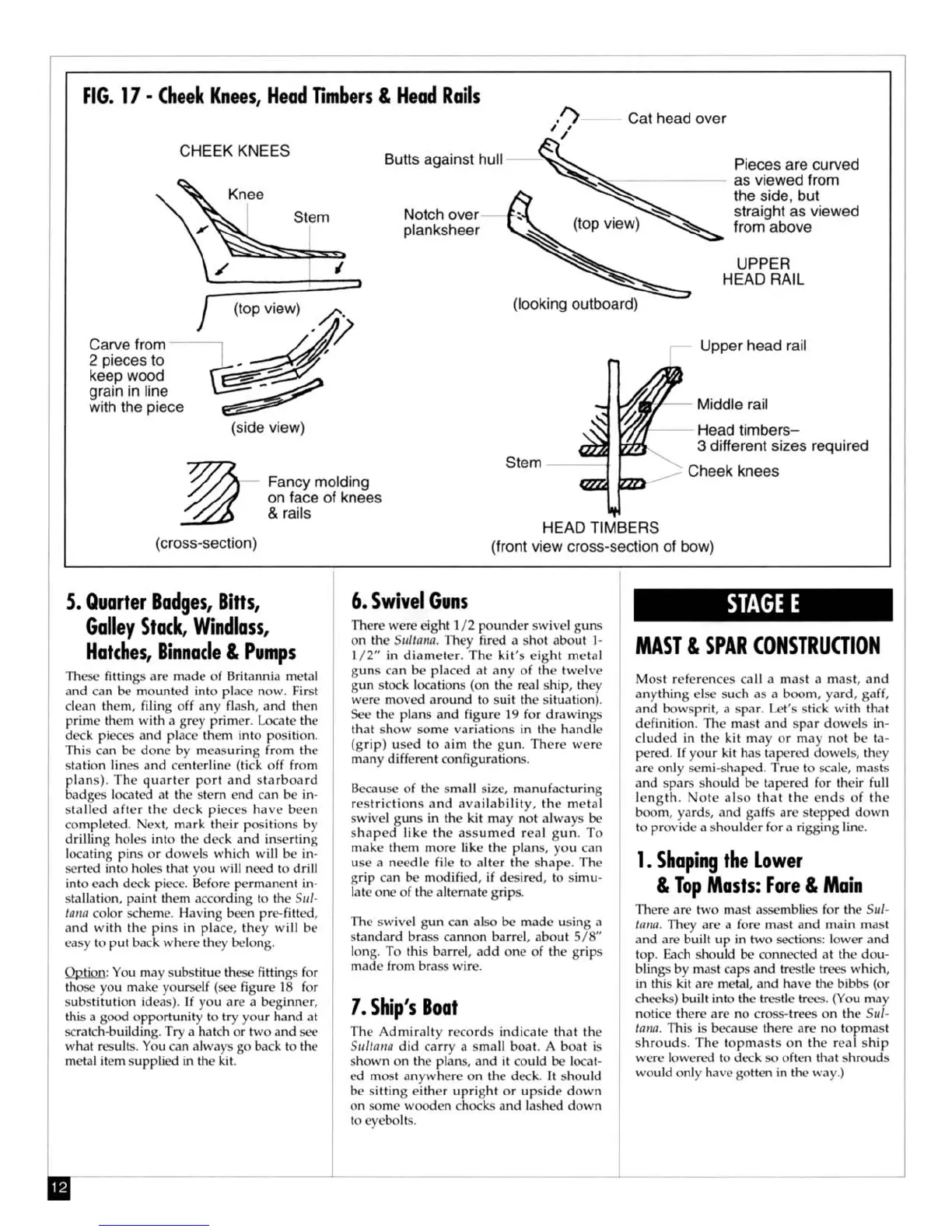 Model Shipways Sultana - Quarter Badges, Bitts, Galley Stack, Windlass, Hatches, Binnacle & Pumps; Swivel Guns; Ships Boat; Stage E: Mast & Spar Construction