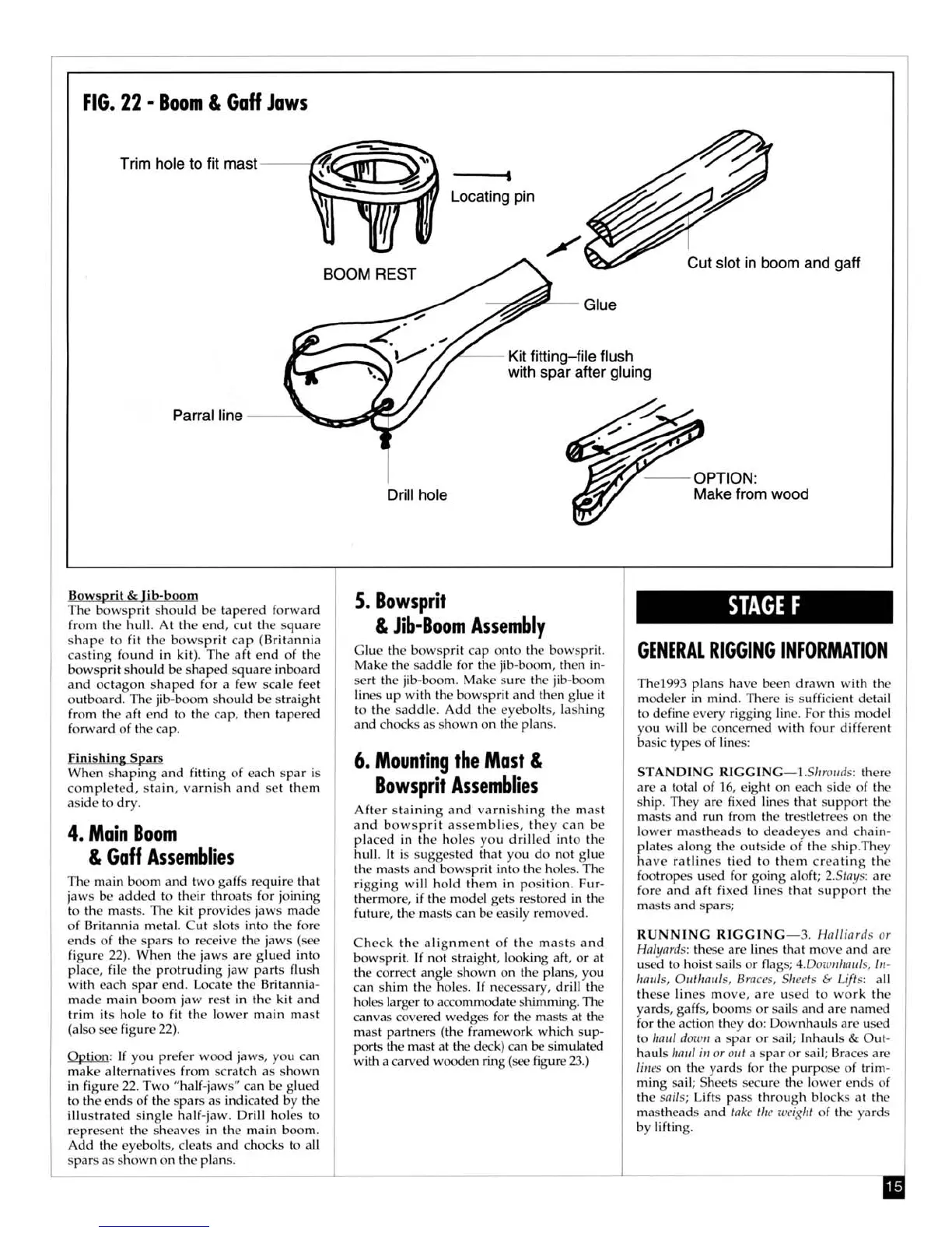 Model Shipways Sultana - Main Boom & Gaff Assemblies; Bowsprit & Jib-Boom Assembly; Mounting the Mast & Bowsprit Assemblies; Stage F: General Rigging Information
