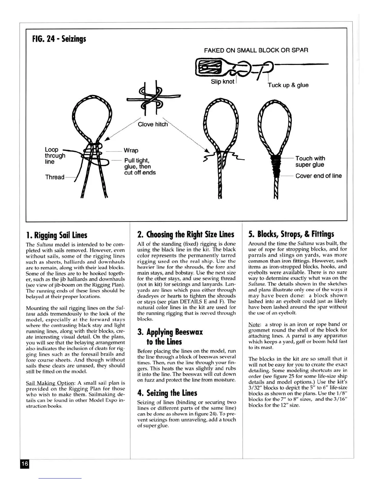 Model Shipways Sultana - Rigging Sail Lines; Choosing the Right Size Lines; Applying Beeswax to the Lines; Seizing the Lines