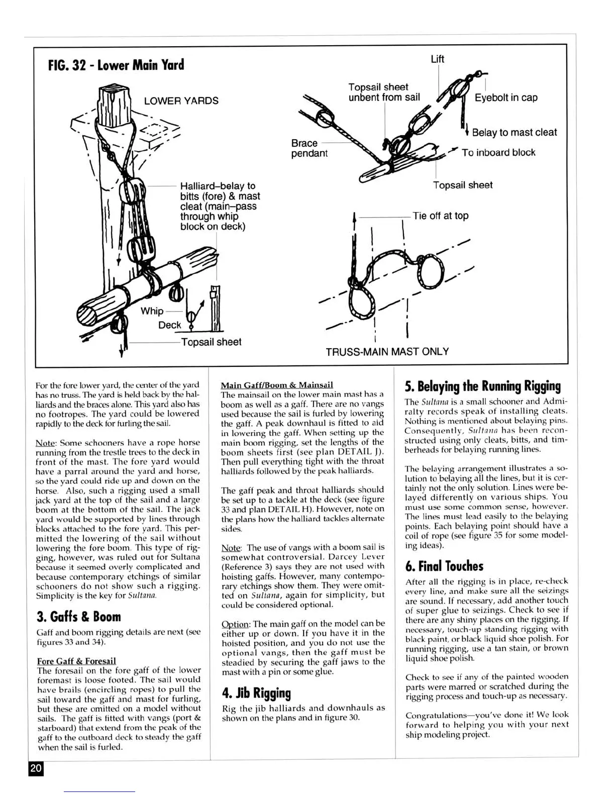 Model Shipways Sultana - Lower Yard Rigging; Gaffs & Boom; Jib Rigging; Belaying the Running Rigging