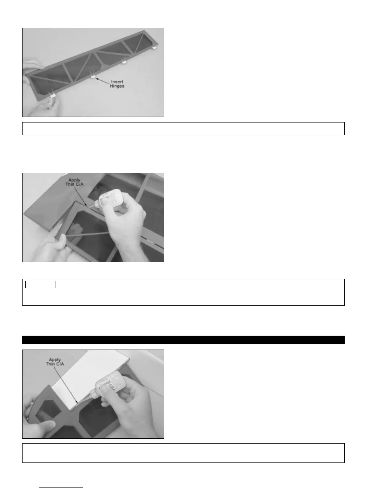 the hinges. The hinges should hold securely. If one or more hinges feels loose, apply more C/A to the hinge(s) and allow it to