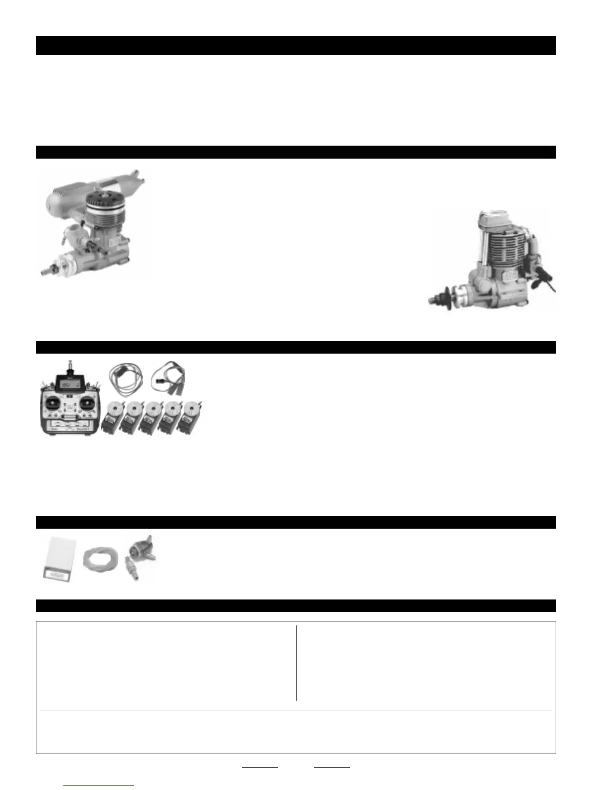 The airplane is designed to use a .46- .61 size two-stroke engine or a .61 - .70 size four-stroke engine.