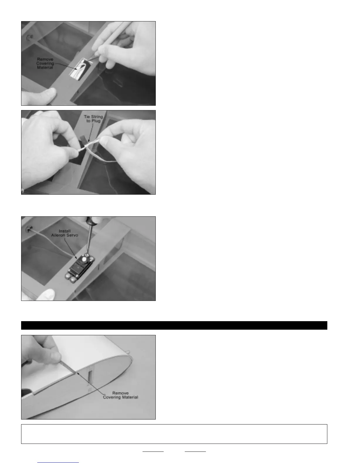 ❑ Install the aileron servo, making sure to drill 1/16" diameter pilot holes