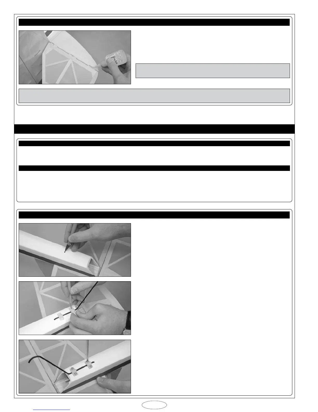 IMPORTANT After allowing the C/A to fully cure, pull on the rudder to check the integrity of the hinges. Apply more C/A to the