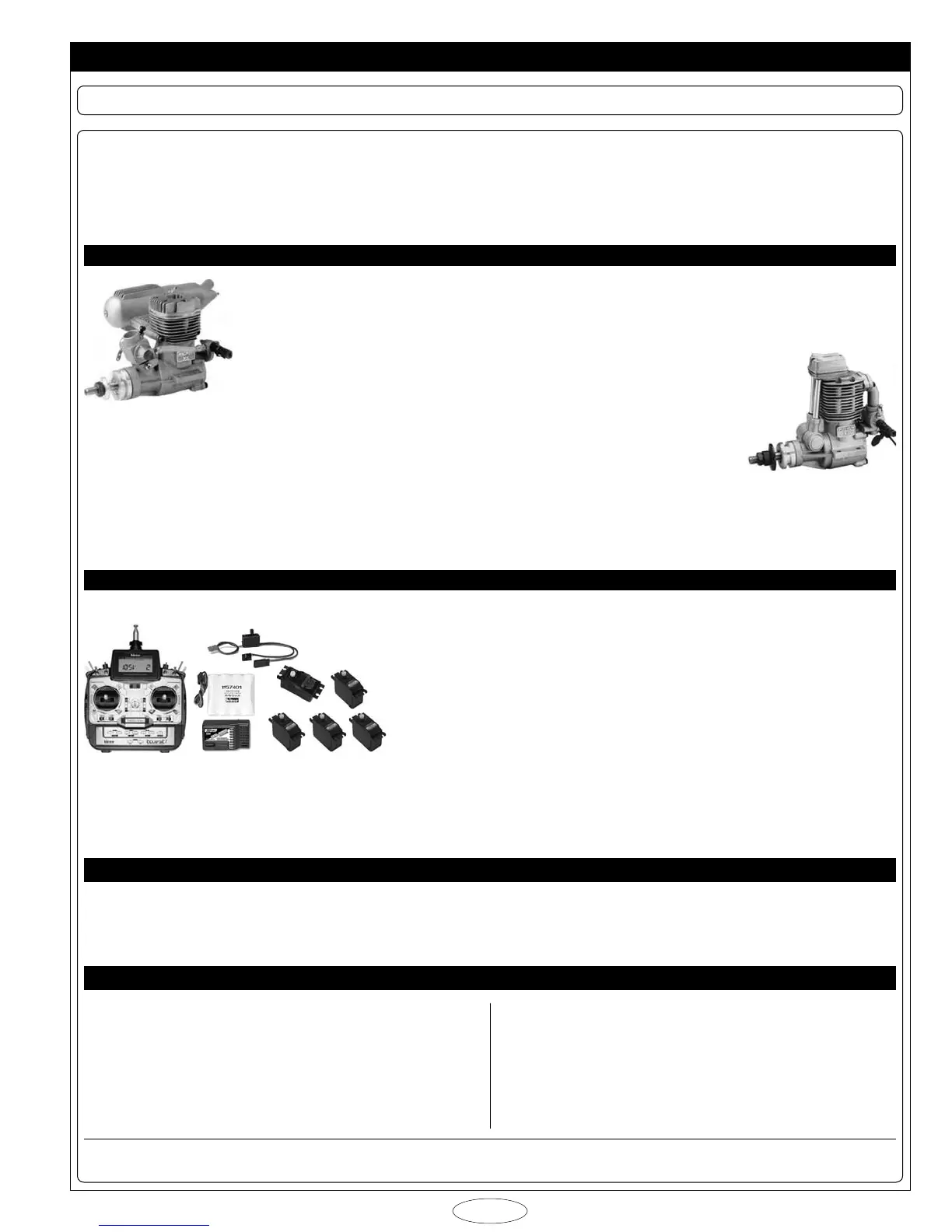 size two-stroke engine or a .52 size four-stroke engine. The airplane will y great using any engine within
