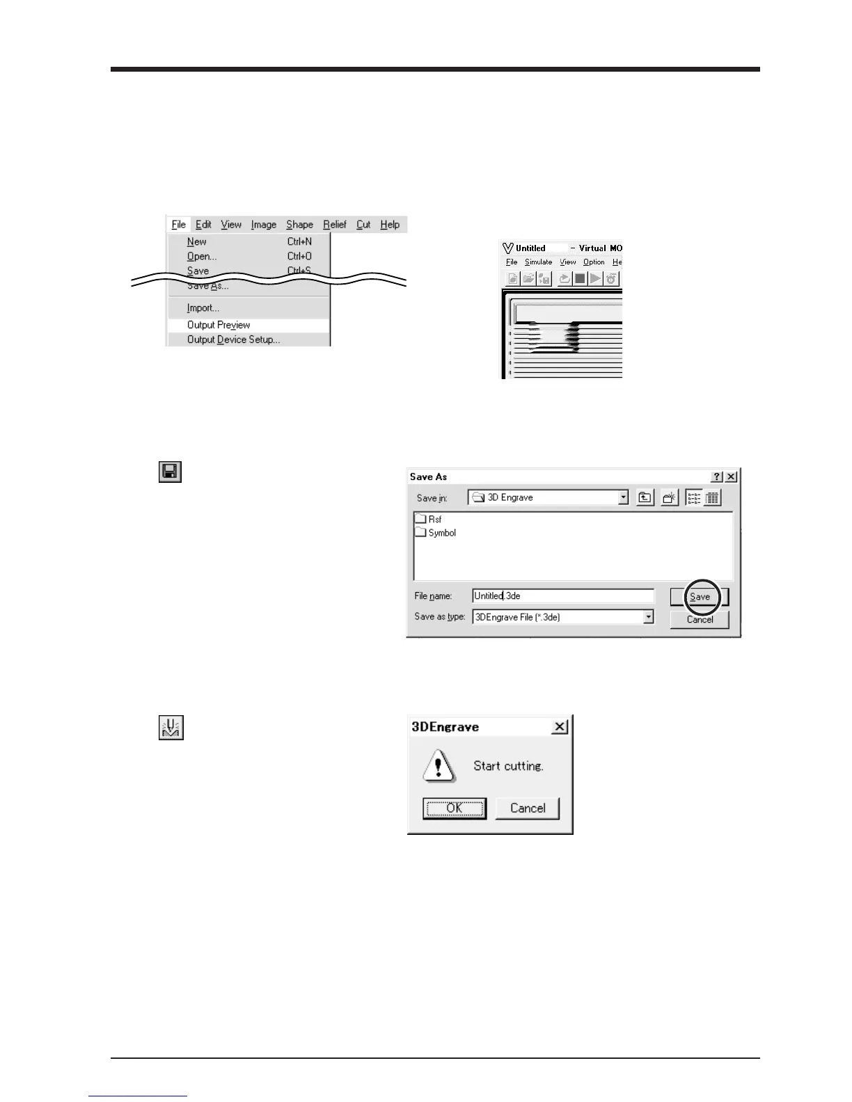If Virtual MODELA is installed and set up, then before you perform actual cutting you can check the shape that will be produced after