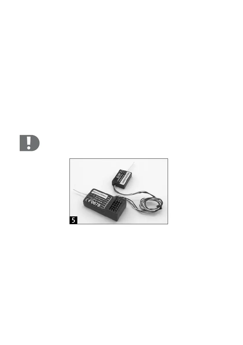 Schließen Sie die in Ihrem Modell verwendeten Servos bzw. Fahrtregler und die Stromversorgung am Empfänger