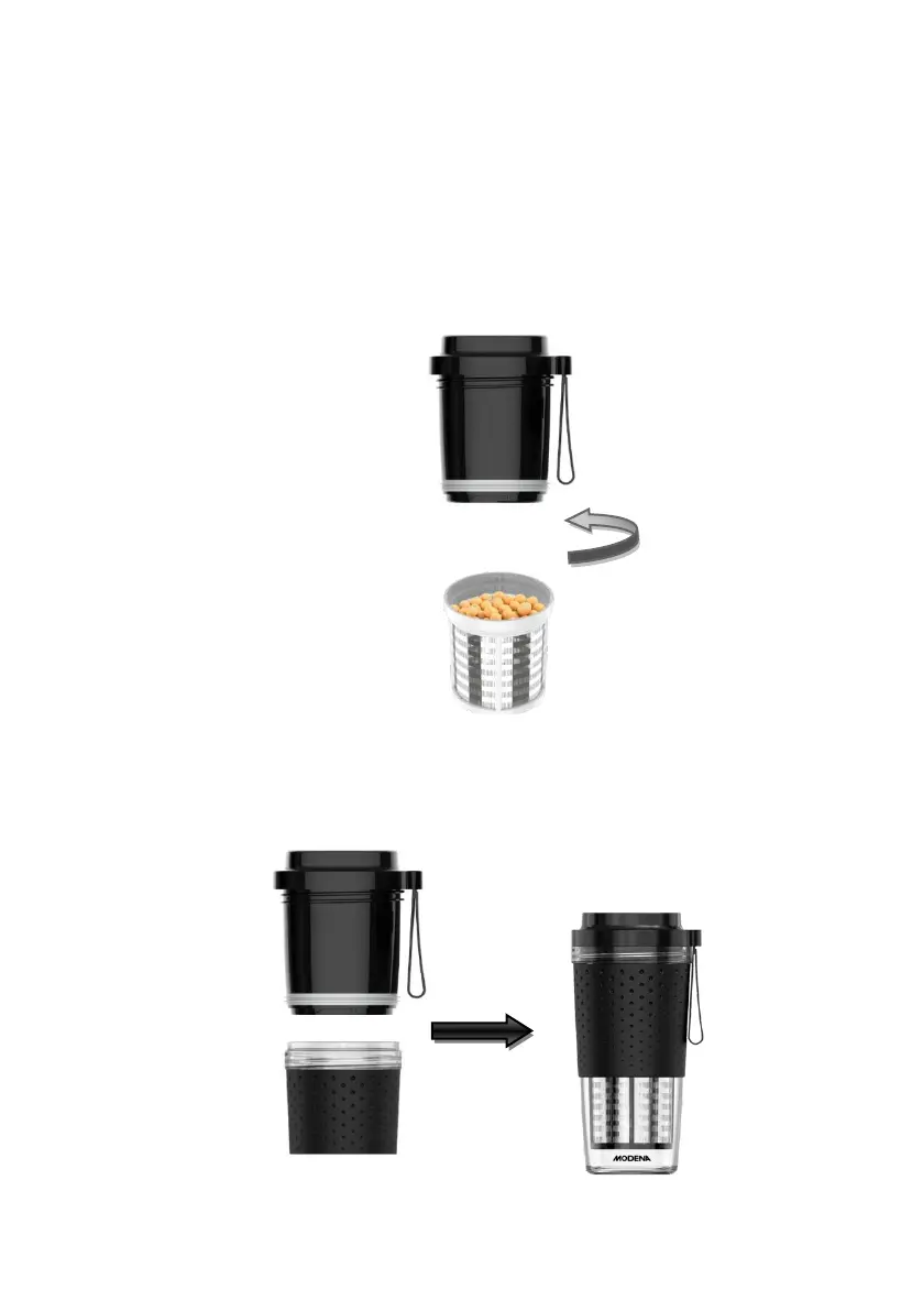 2. Screw the motor unit that is attached with juice/vegetable filter to