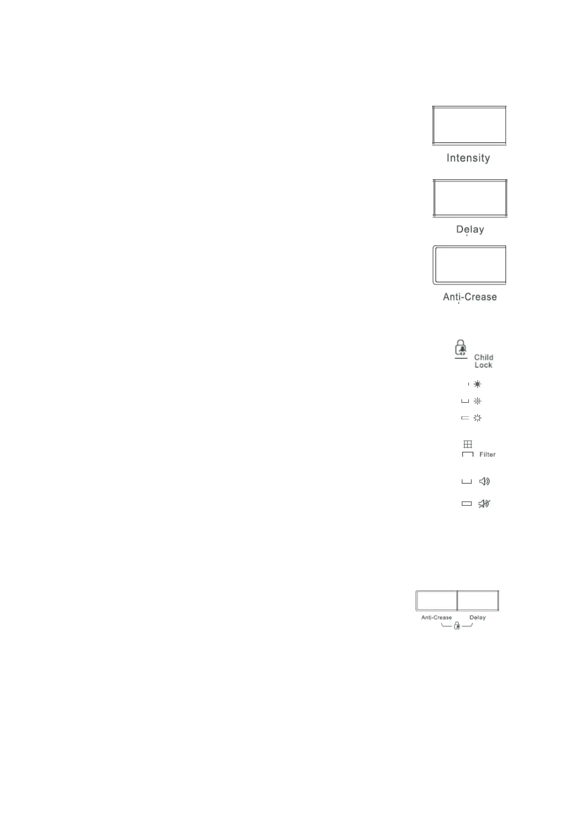 Ketika mesin menyala, tekan tombol “Anti-Crease” dan “Delay” secara