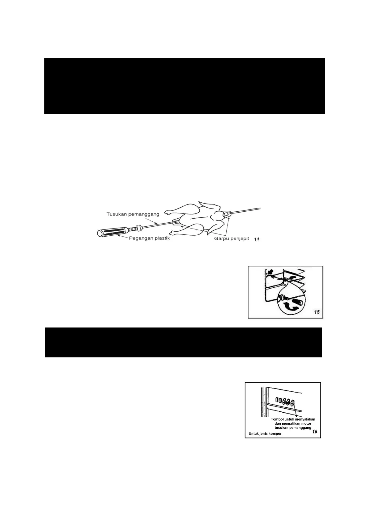 Khusus untuk kompor yang dilengkapi tusukan pemanggang/turnspit. Cara penggunaannya