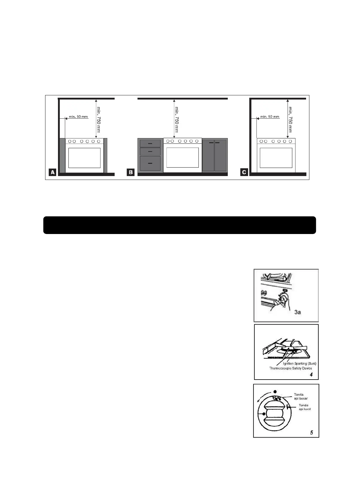1. Jarak dinding samping yang lebih tinggi dari kompor freestanding min. 50 mm.