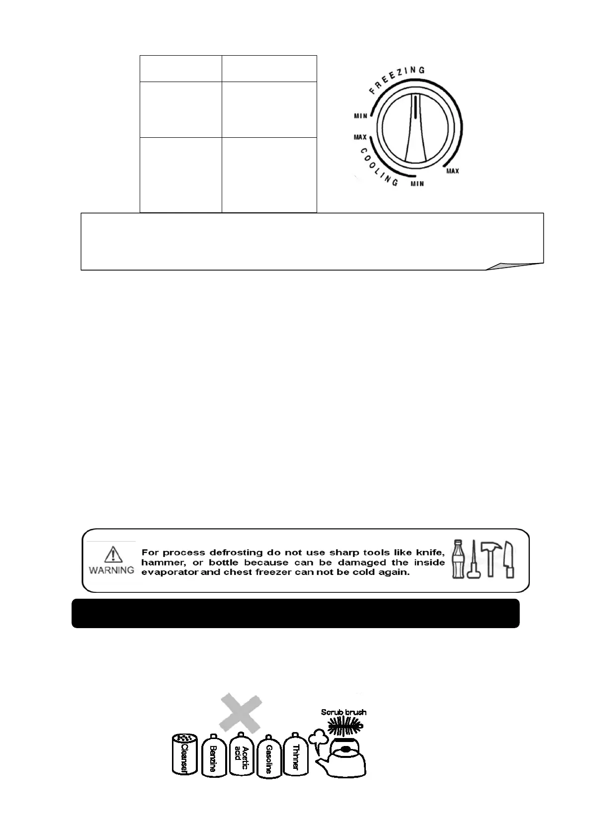 defrosting, refrain from using sharp objects such as hammer, knife or bottle to avoid