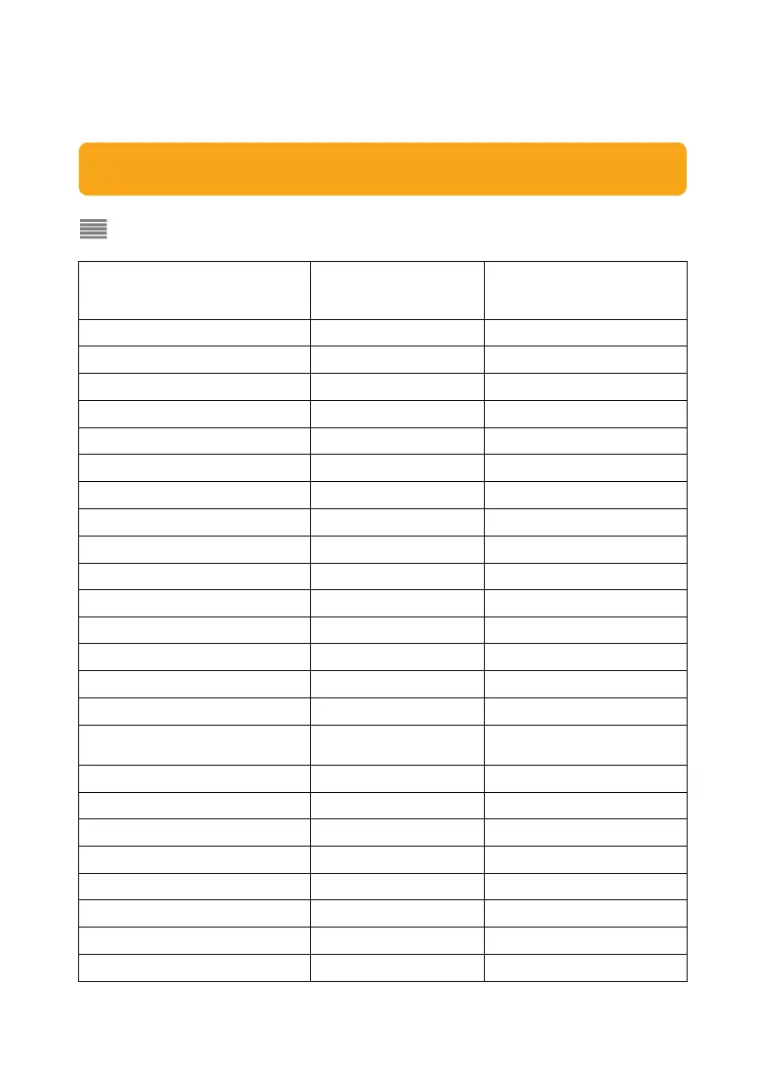 The following table is for reference only