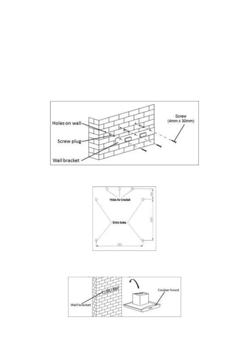 • Leave up the exhaust hood and hang onto the wall bracket hook.