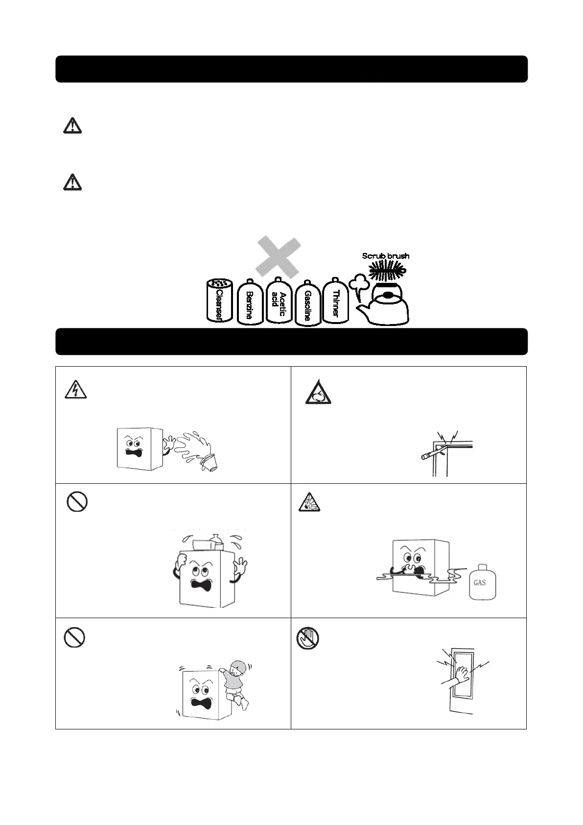 WARNING:Do not splash water directly onto the cooler and do not wash with water. Shortcircuit and