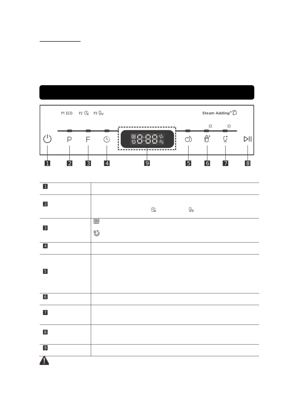 P1 (ECO), P2 (1 hour ), P3 (Rapid ), Steam Adding