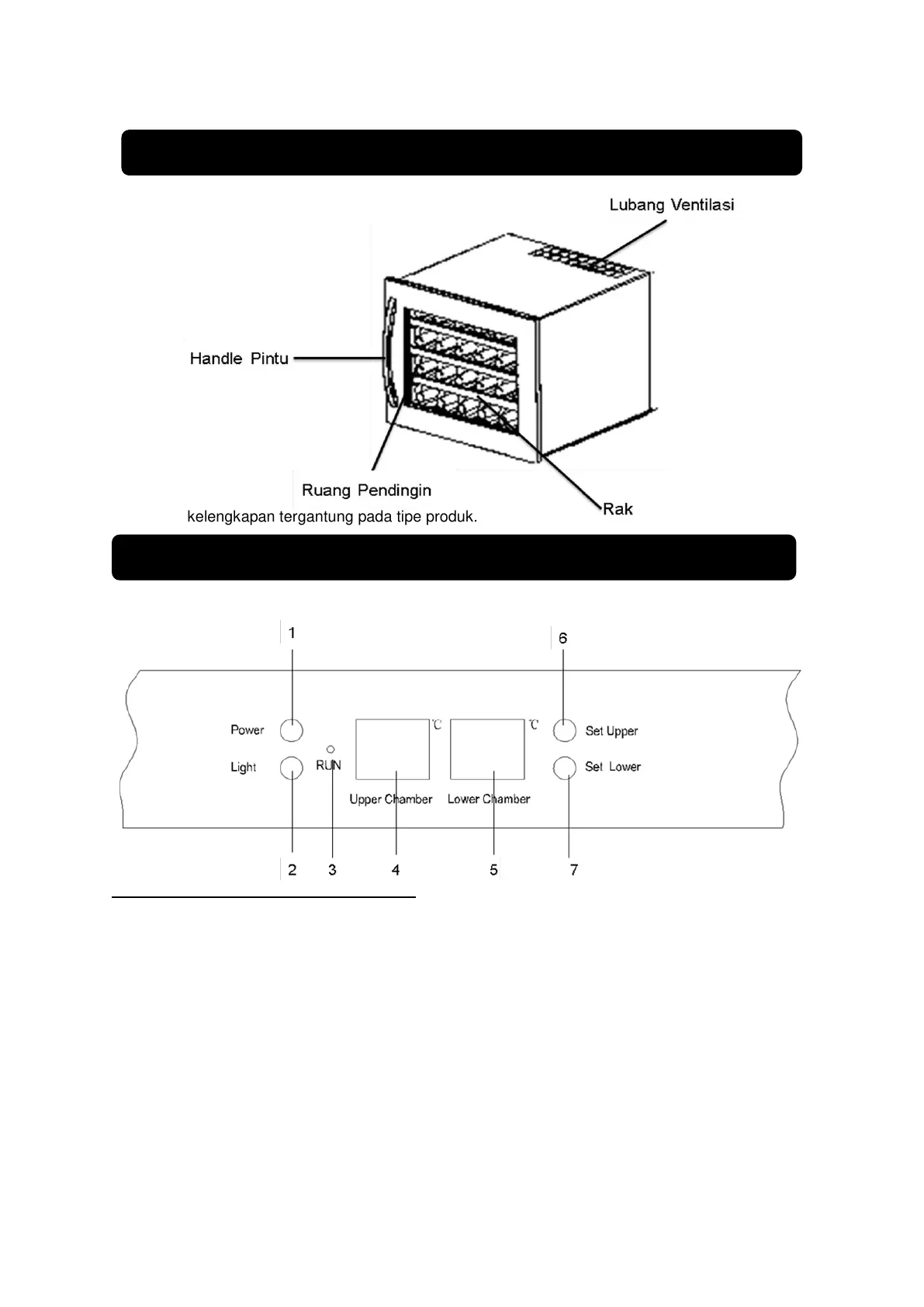 Menampilkan suhu aktual pada kompartemen bagian bawah.
