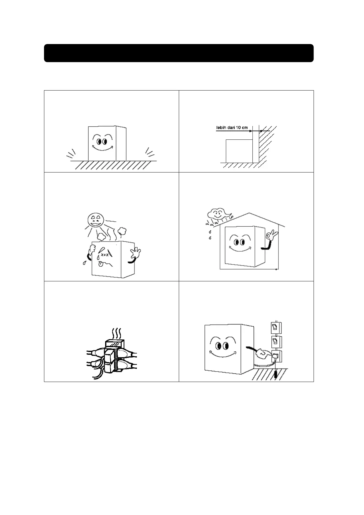 1. Jangan pernah menempatkan unit pada ruangan yang lantainya basah, berair atau pada tempat