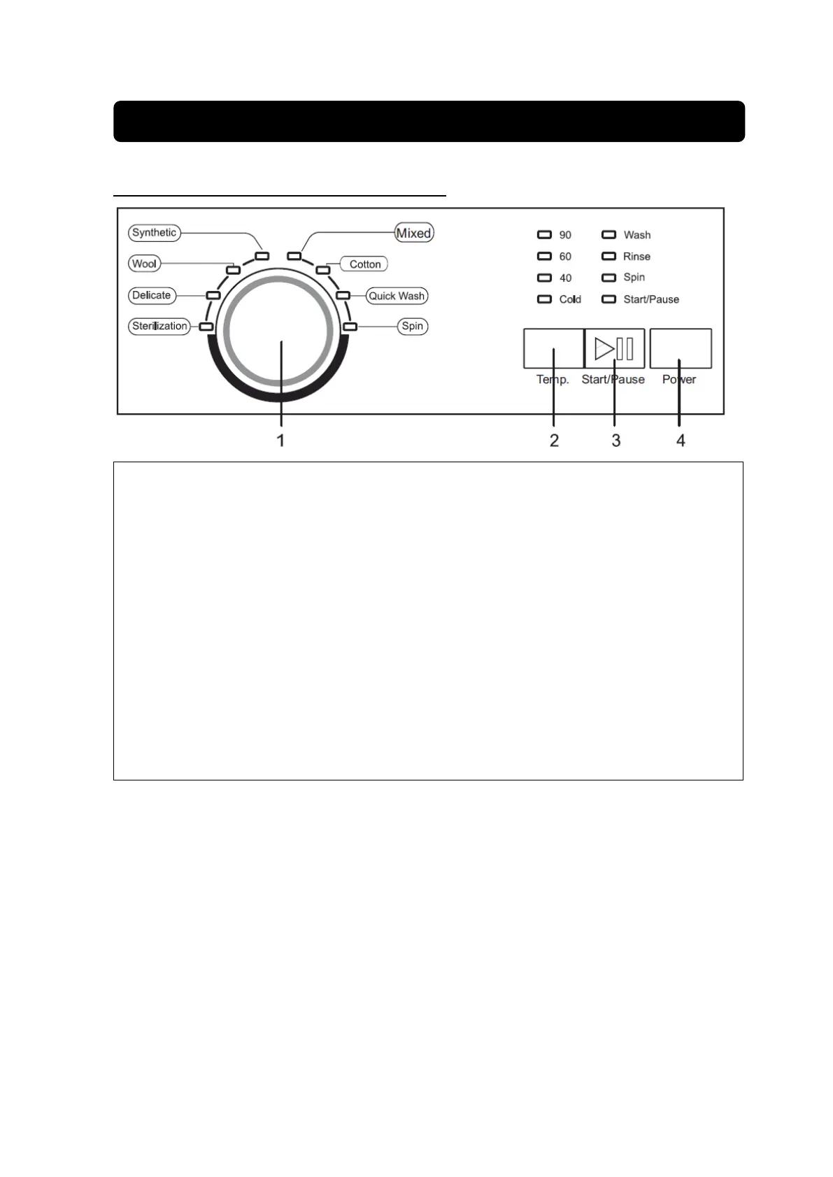 program are Mixed, Cotton, Quick Wash, Spin, Synthetic, Wool, Delicate, Sterilization. Once