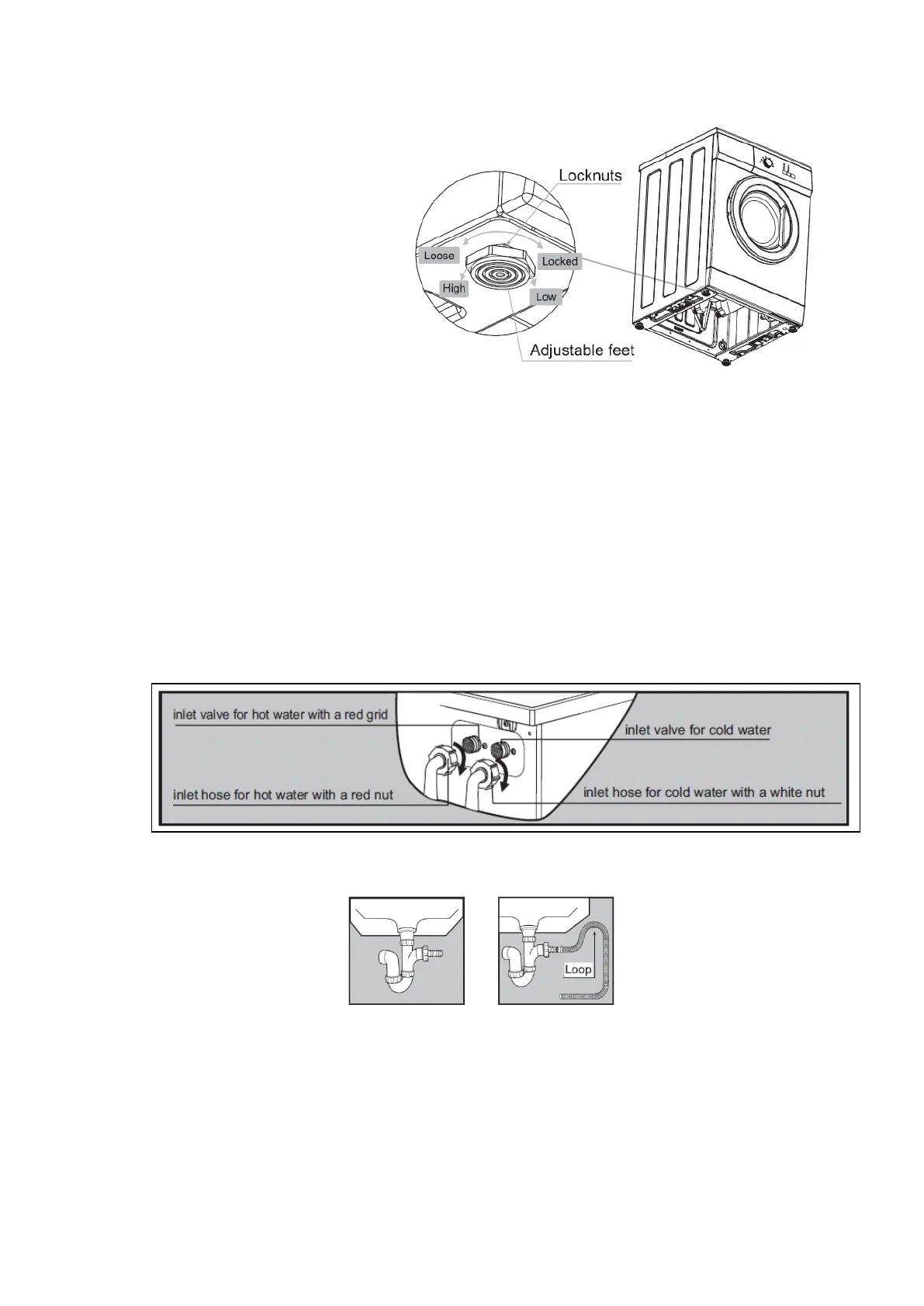 - Use a spirit level to check the machine is standing level. Hold adjust feet securely with a pipe