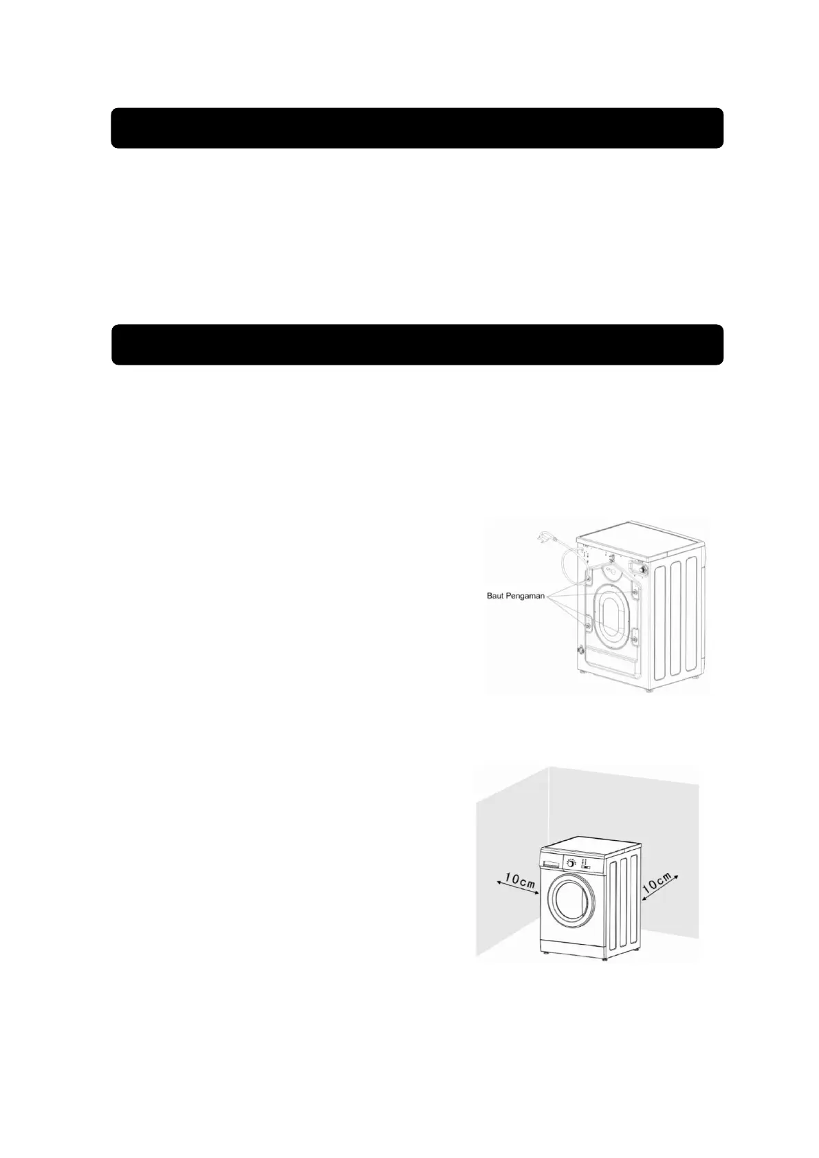 - Supaya mesin cuci Anda siap sebelum dipakai, harap memanggil teknisi untuk pemasangan.