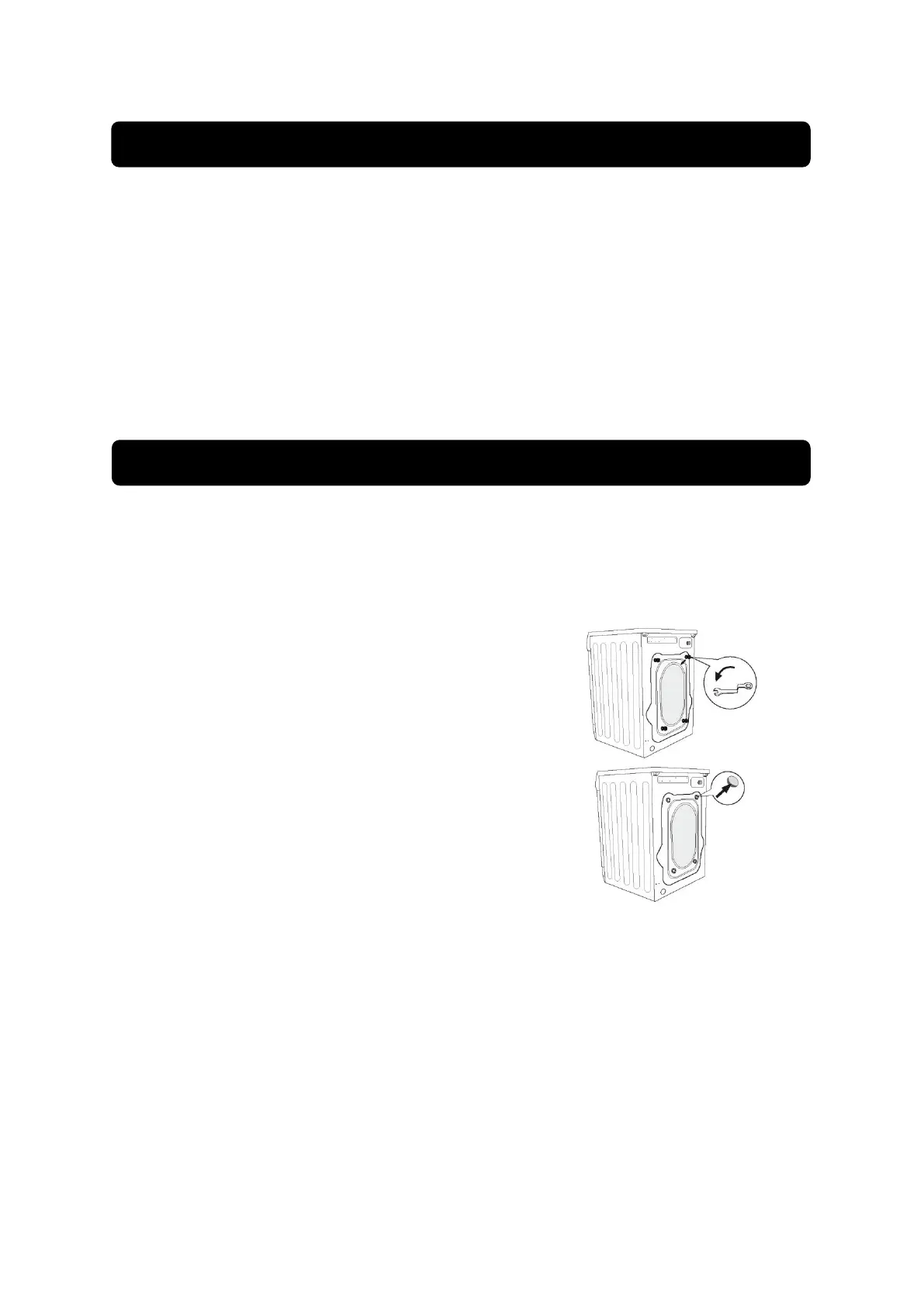 washing machine, remove the bolts blocking as shown