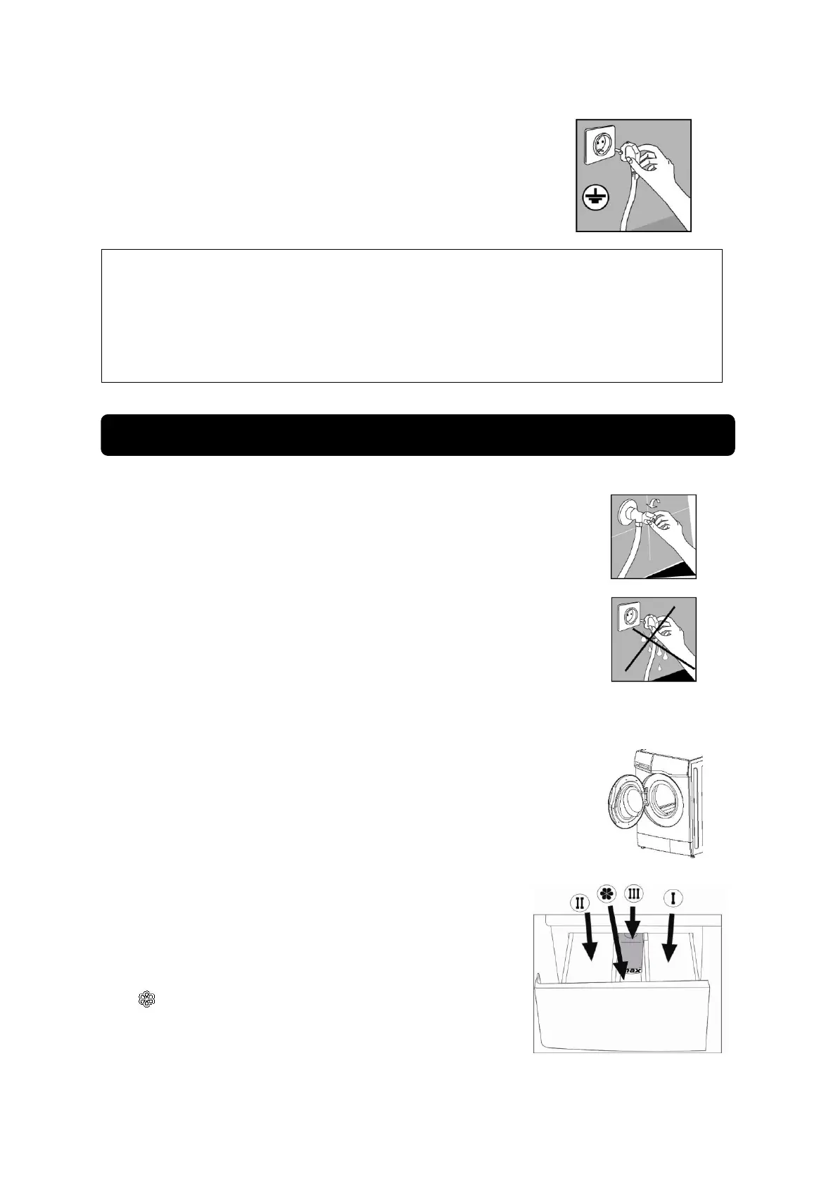 - Kotak deterjen untuk tahap pencucian utama/main wash(II).