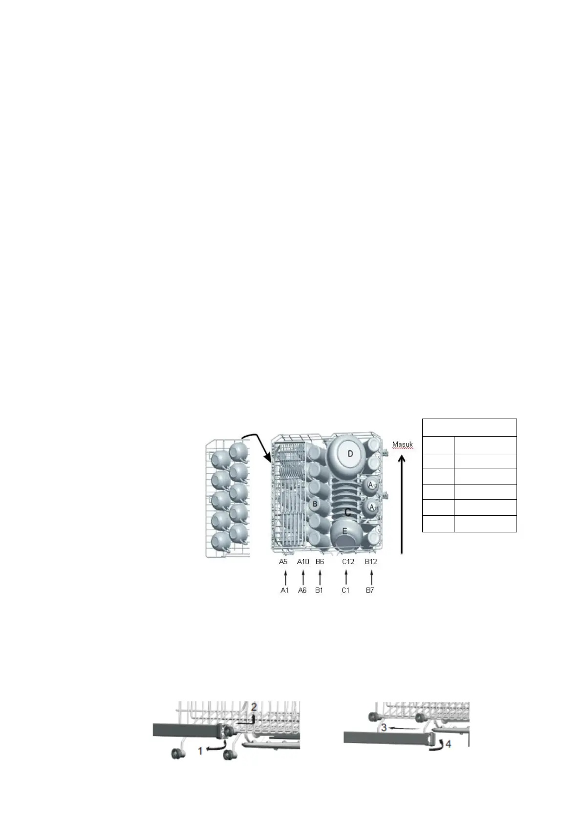 Untuk mendapatkan performa terbaik dari mesin pencuci piring ini, ikuti petunjuk pengisian keranjang