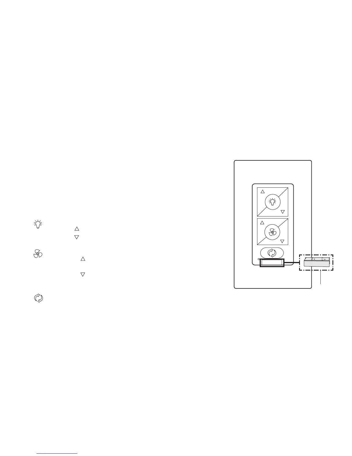 Restore power to ceiling fan and test the wall control as below for proper operation.
