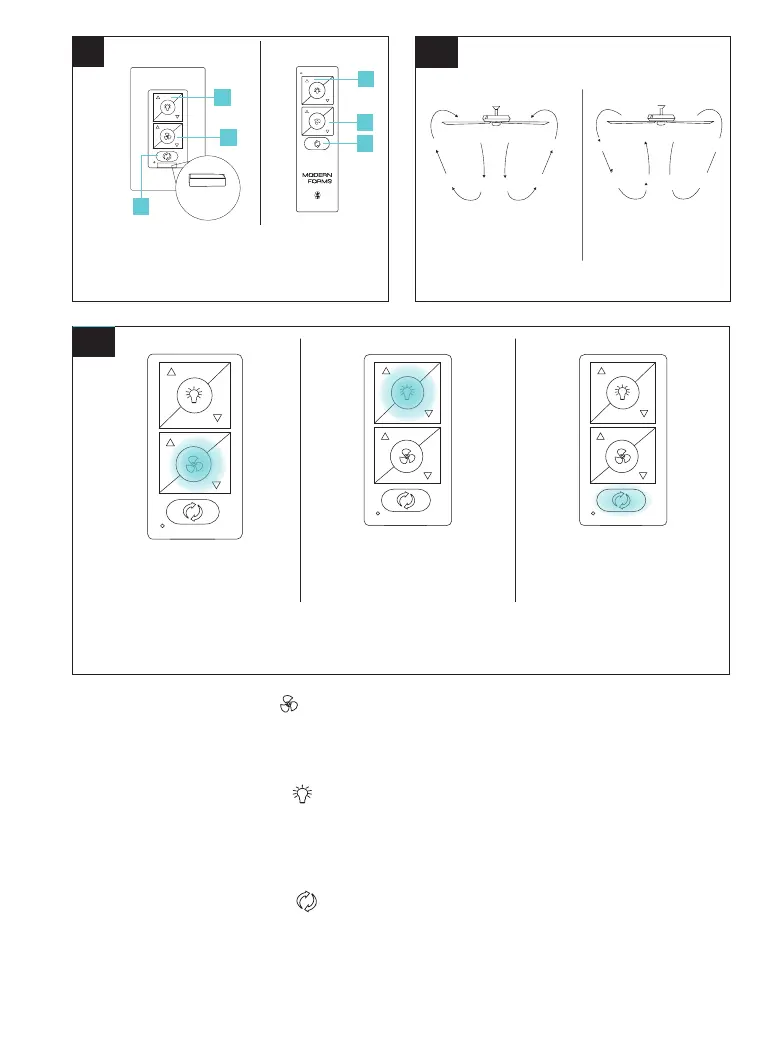 Fan Direction: Press and hold button for 4 seconds. The LED on the remote will
