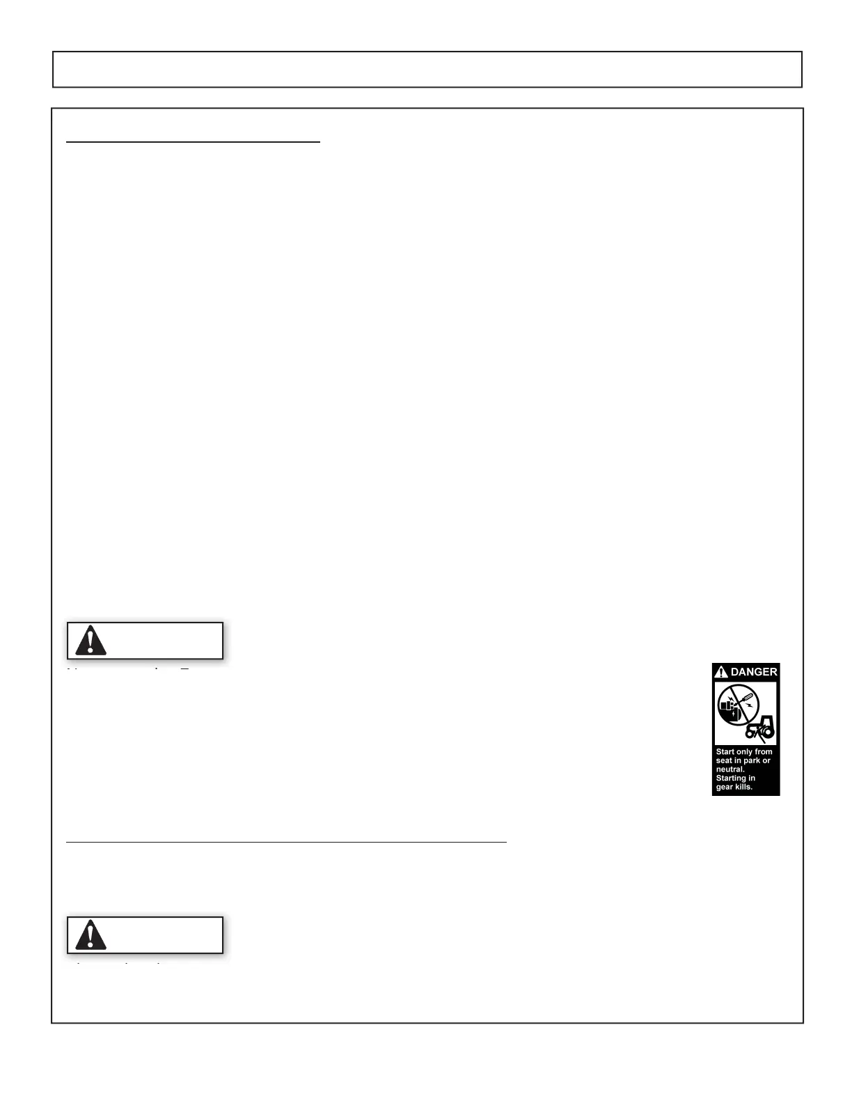 Start tractor only when properly seated in the Tractor seat. Starting a tractor in gear can