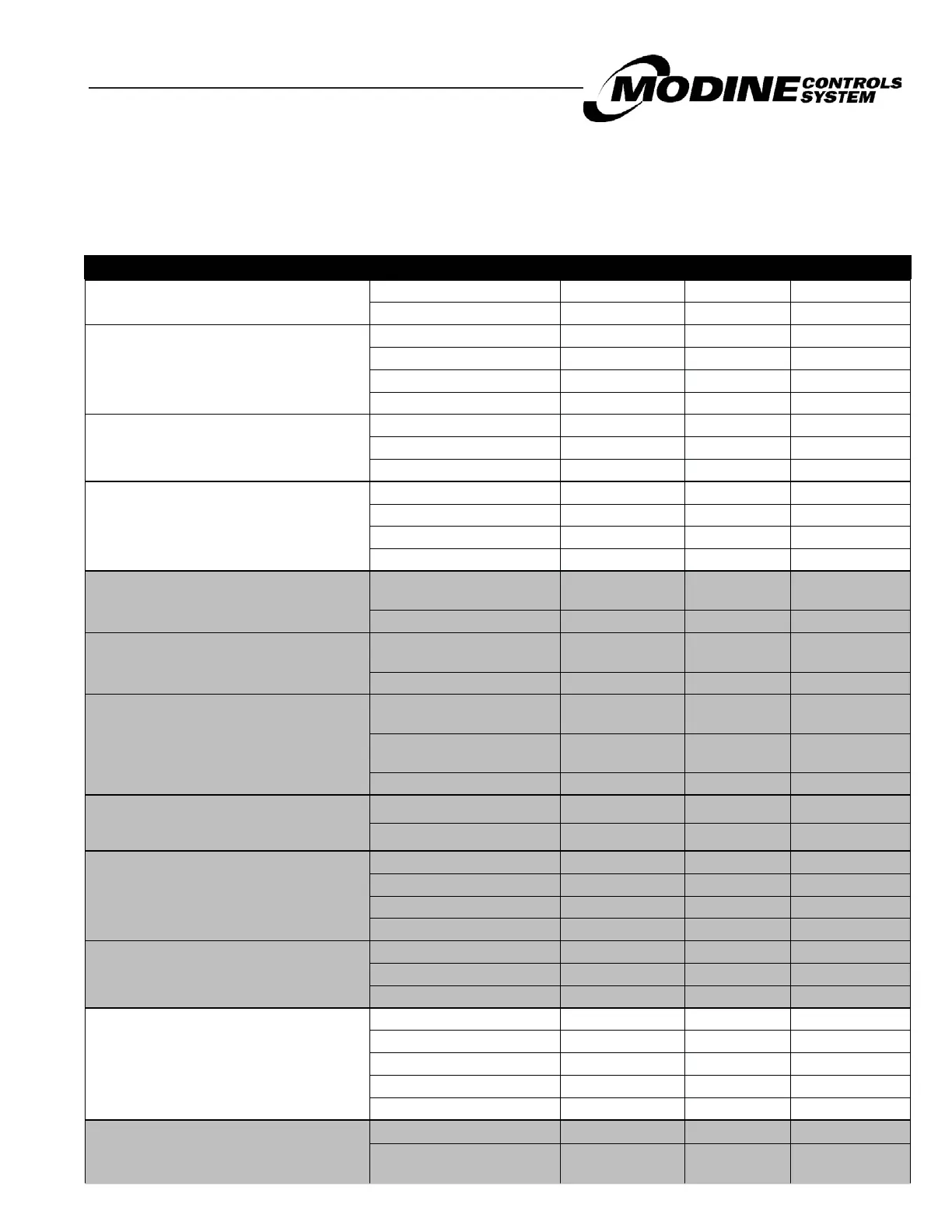 The following table describes the menu parameters (NOTE: change in shading indicates change to next screen by using