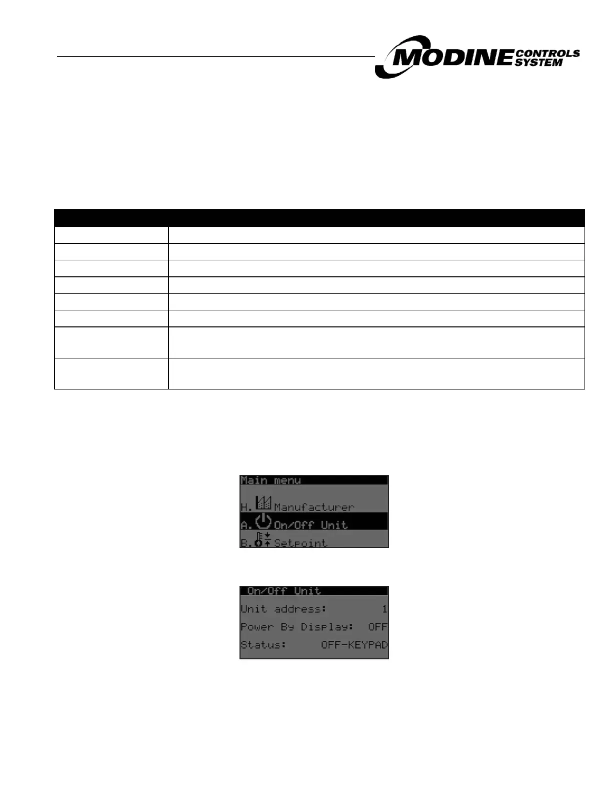 buttons to navigate to the On/Off sub menu as shown in the following picture: