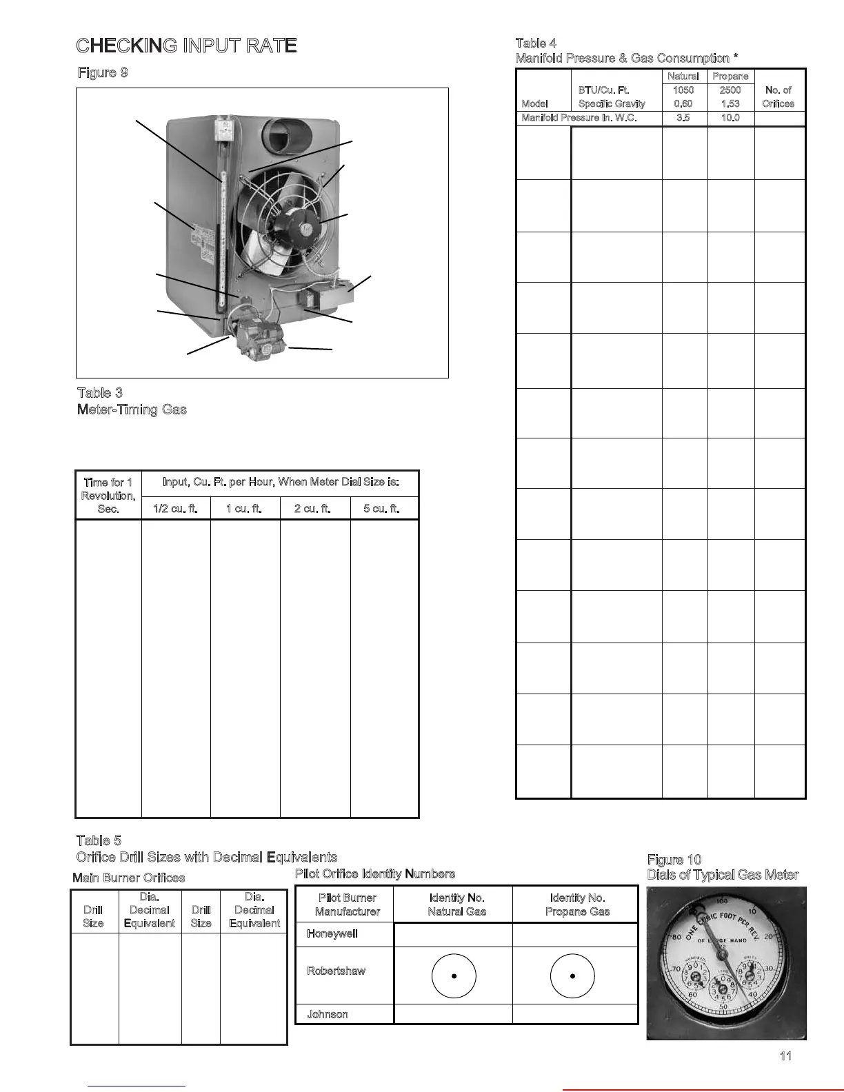 meter dials and various rates of gas input in cu. ft. per hour. To