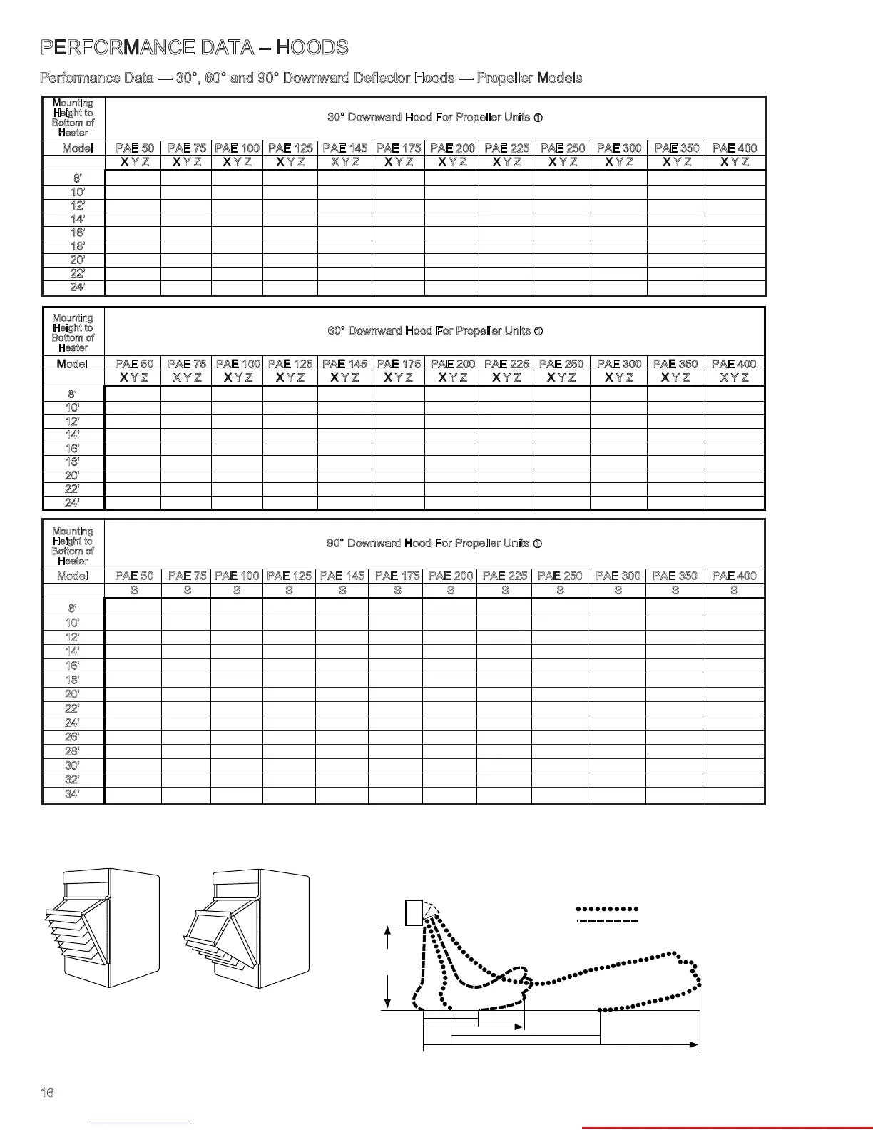 Performance Data — 30°, 60° and 90° Downward Deflector Hoods — Propeller Models