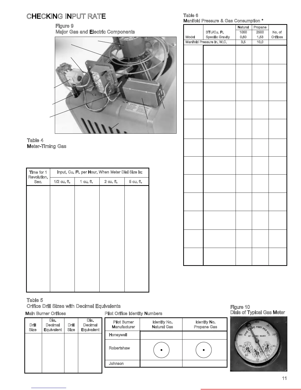 meter dials and various rates of gas input in cu. ft. per hour. To