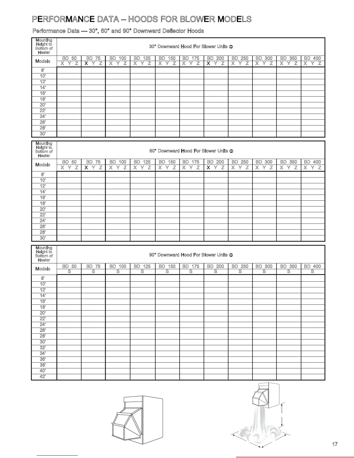 PERFORMANCE DATA – HOODS FOR BLOWER MODELS