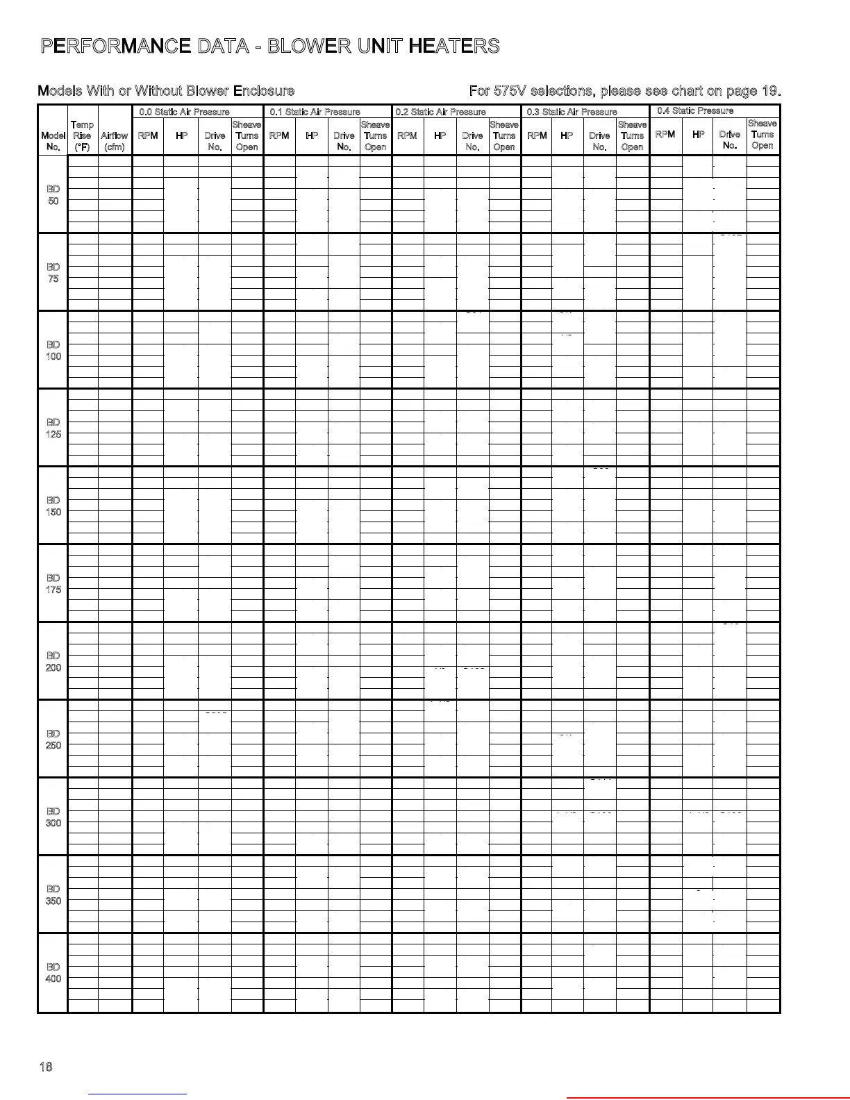 PERFORMANCE DATA - BLOWER UNIT HEATERS