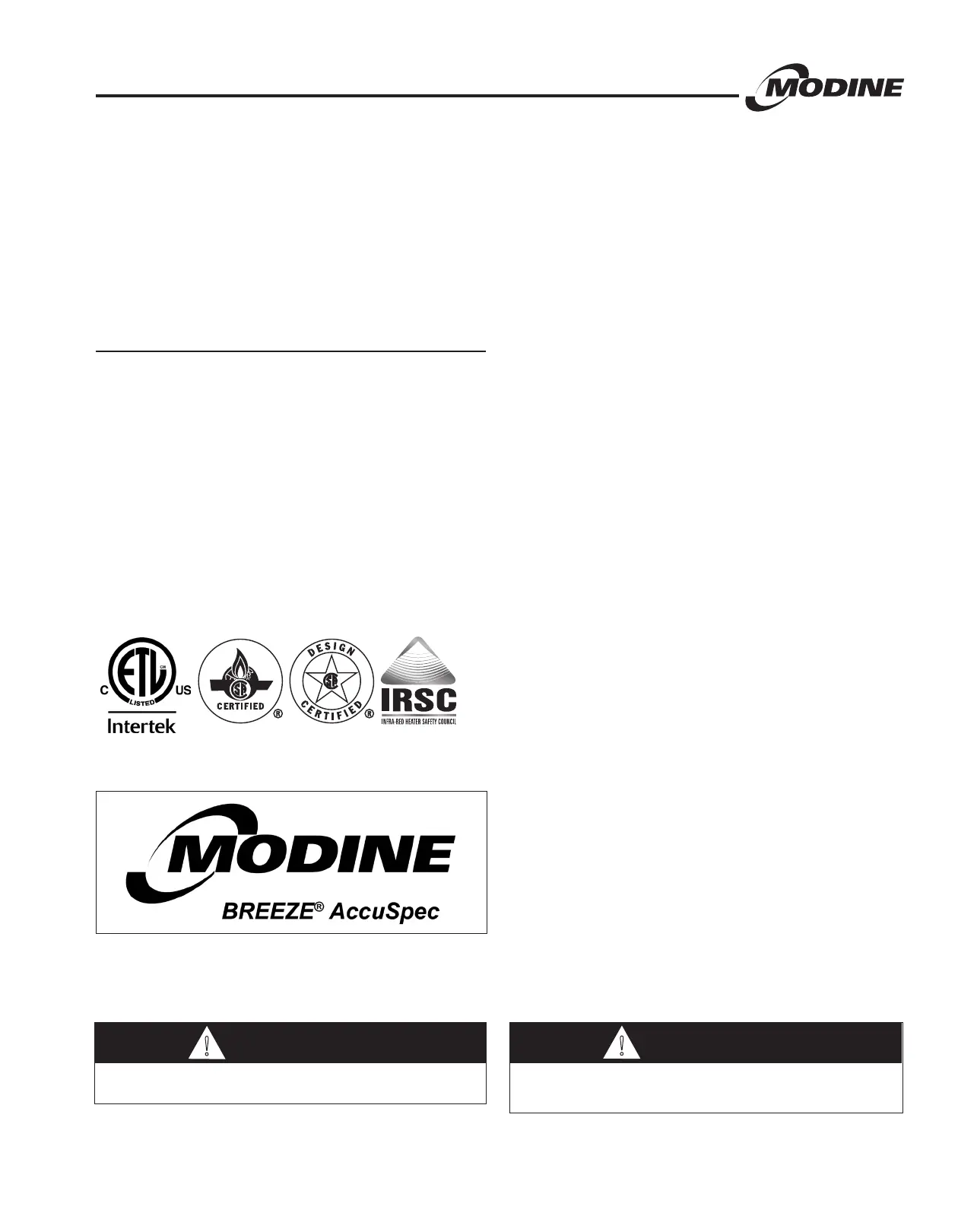 Modine Manufacturing HD - Warning Warning!!; Table of Contents; Infrared Heating Defined; Advantages of Infrared Heating