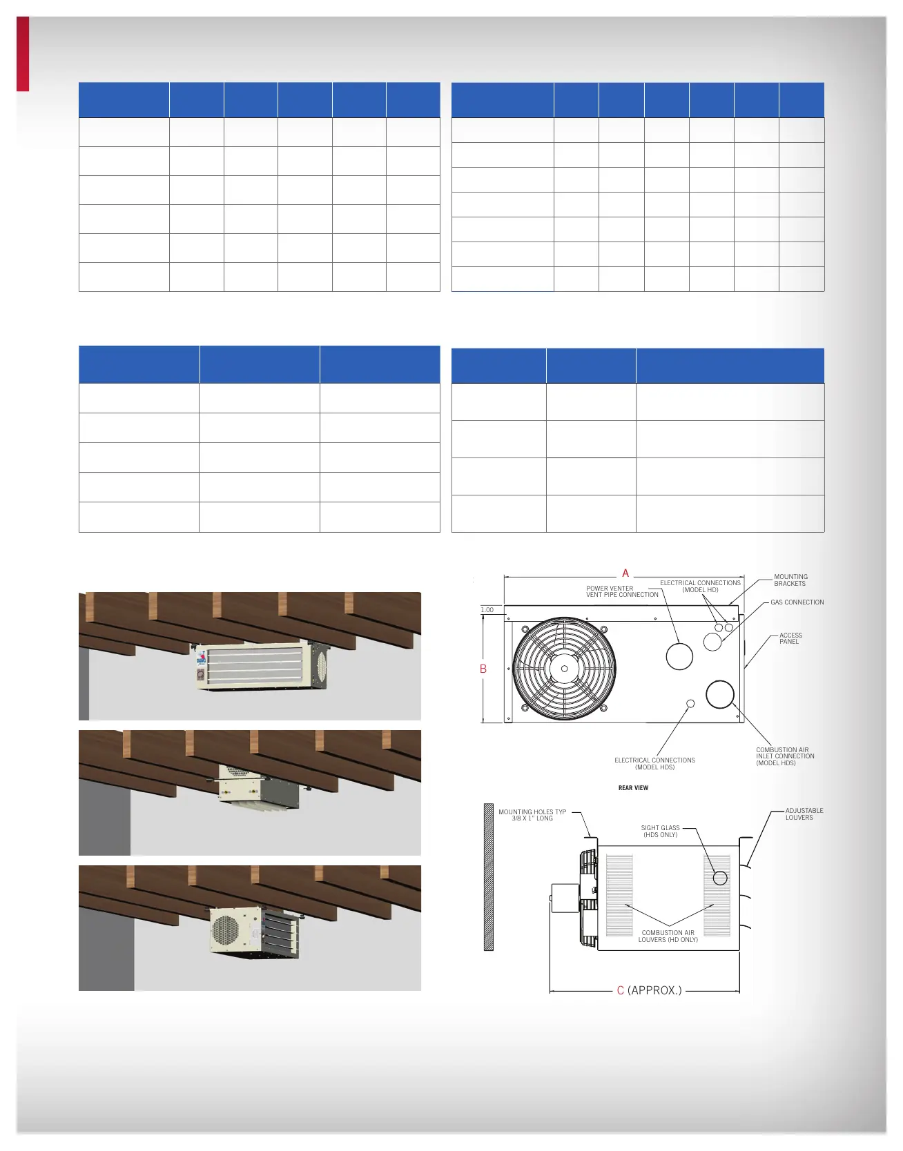 Data taken at 55°F air temperature rise. At 65°F ambient and unit fired at full-rated input. Mounting height as measured from bottom of unit, and without deflector hoods.