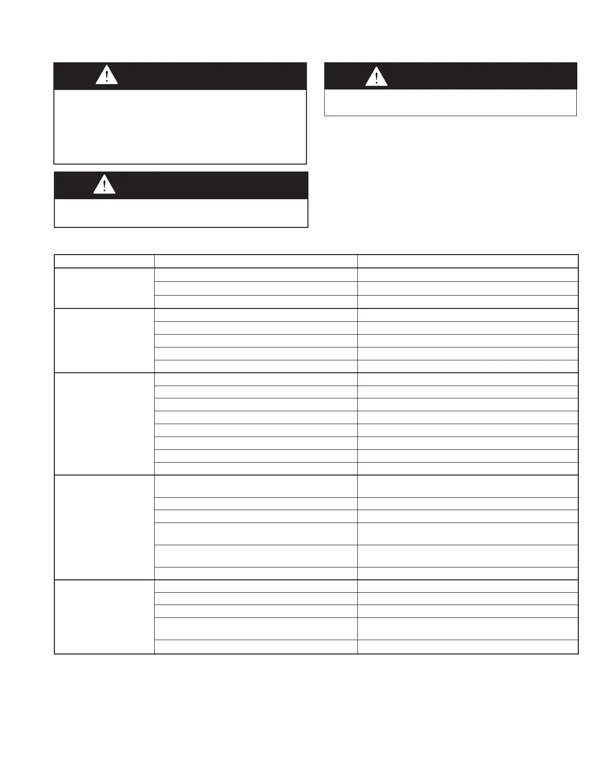 this manual. The troubleshooting tables are as follows: