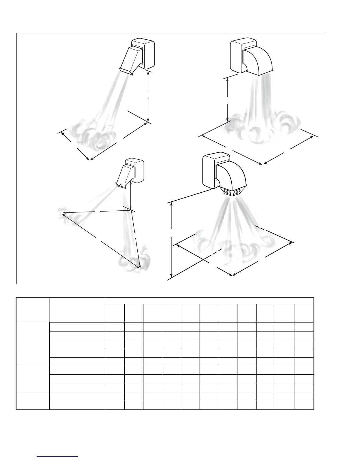 face of the air discharge opening. On 5-way nozzles all air deflectors set perpendicular to floor. Static pressure measured at 0.1" W.C. for 90° nozzle, 0.2" W.C. for 40°