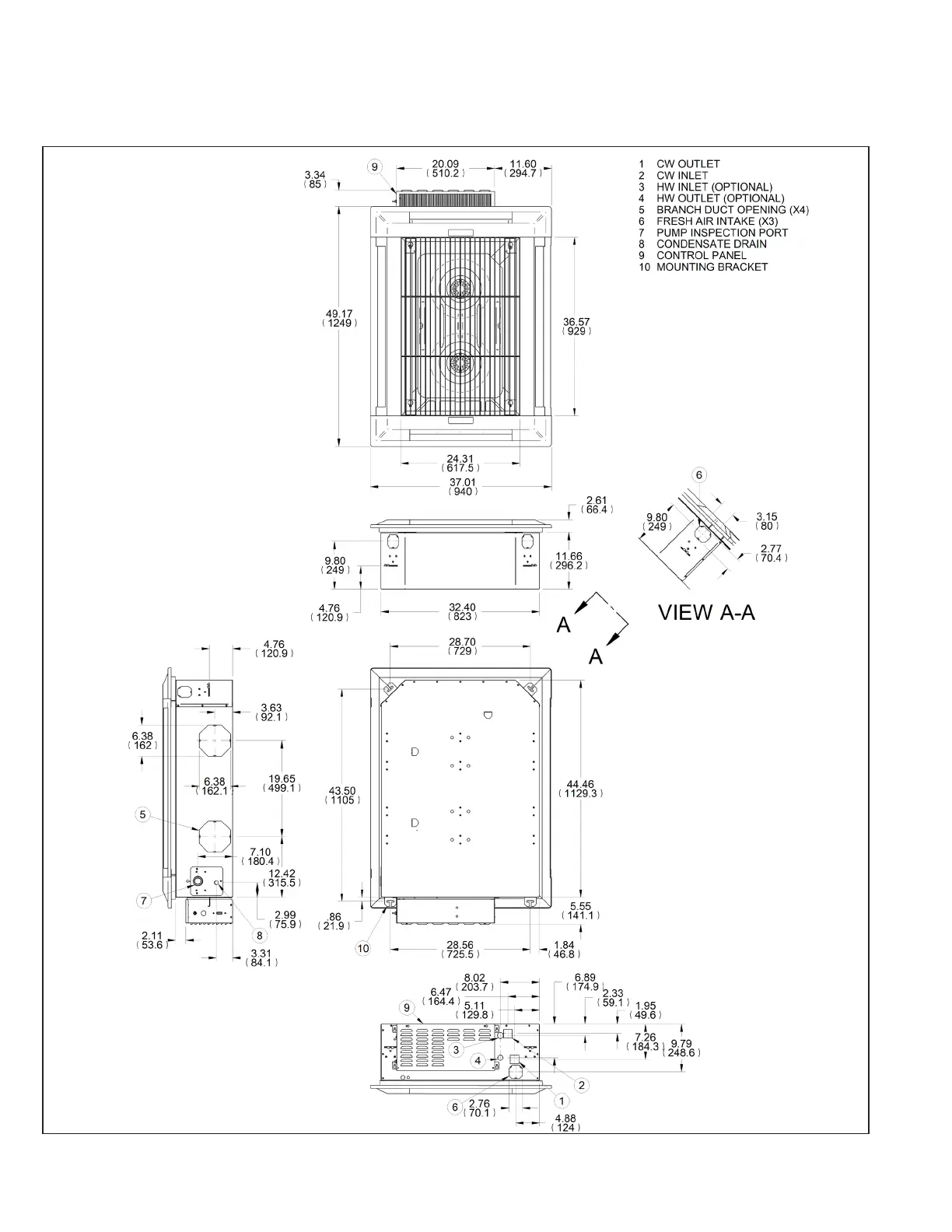 Figure 22.1 - Dimensions – Large Chassis: Chilled Water Units – Size 33 and 36