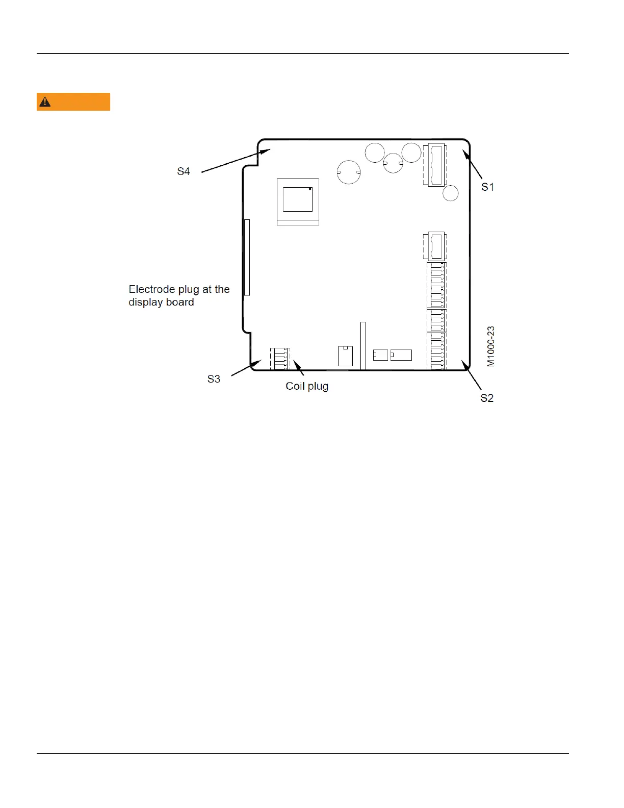 2. Insert new circuit board and fasten in place by replacing screws S1…S4. Insert plugs that were previously removed.