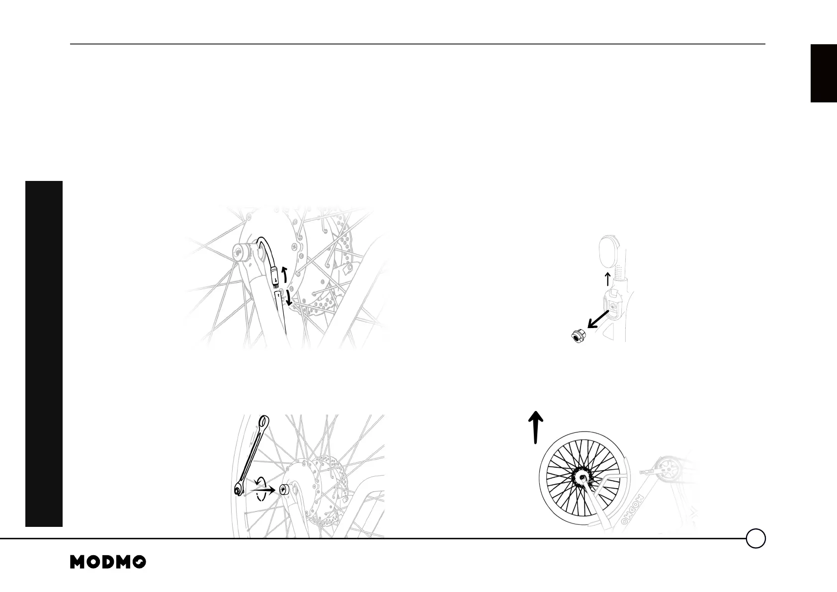 Please refer to the assembly videos provided on Modmo’s YouTube channel for further detail on the removal and fitting of the front wheel.