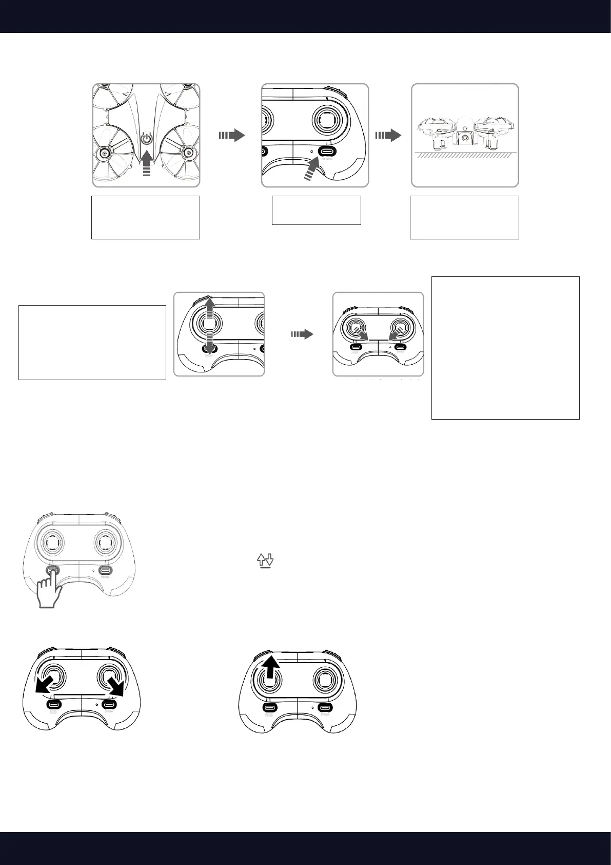 dann den linken Steuerknüppel langsam nach vorne, um abzuheben.