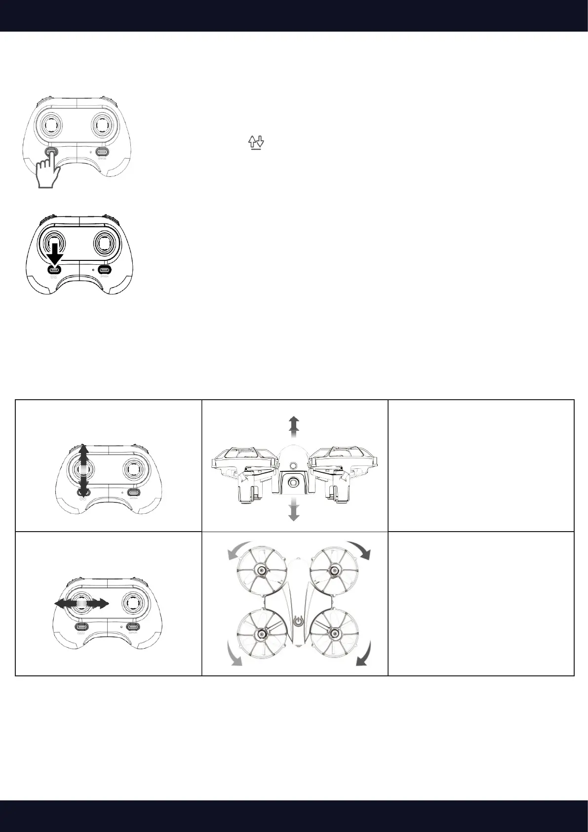 Ziehen Sie den linken Steuerknüppel nach hinten unten, um die Drohne