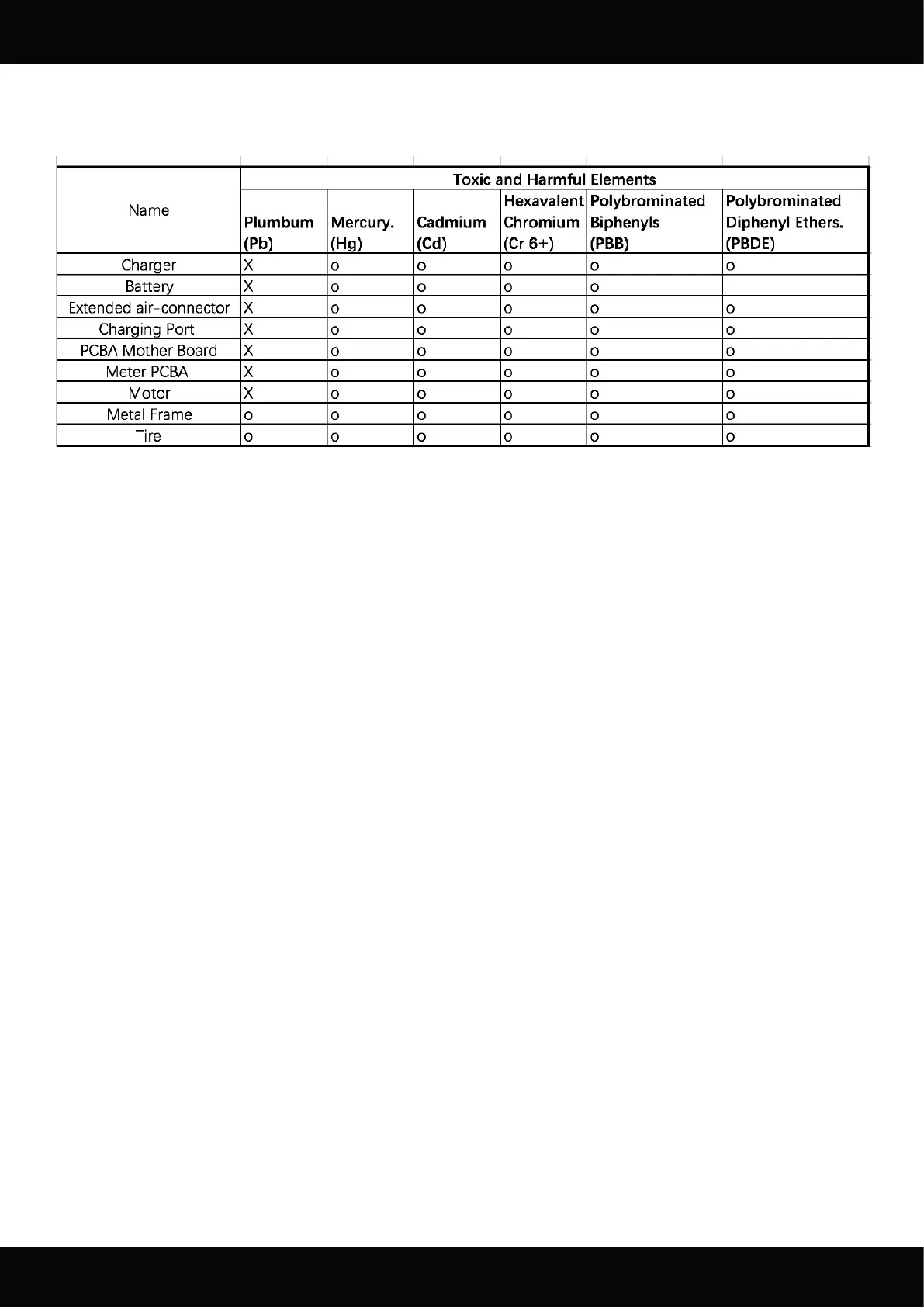 4. Name and Content of Toxic or Harmful Elements of the scooter